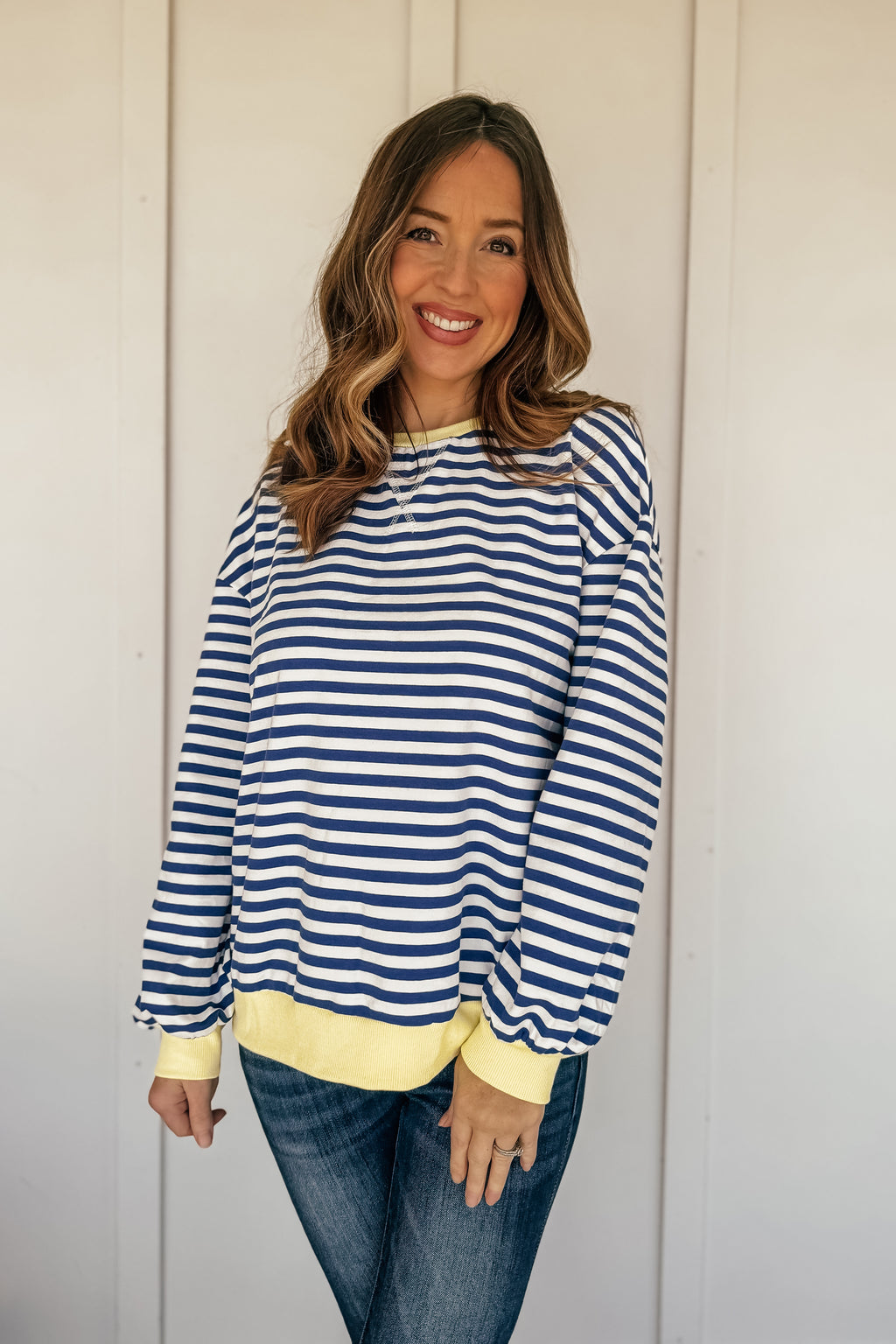 Stripe Contrast Trim Oversized Pullover Sweatshirt