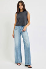 RISEN Full Size Mid Rise Wide Jeans with Front Patch Pocket Plus Size